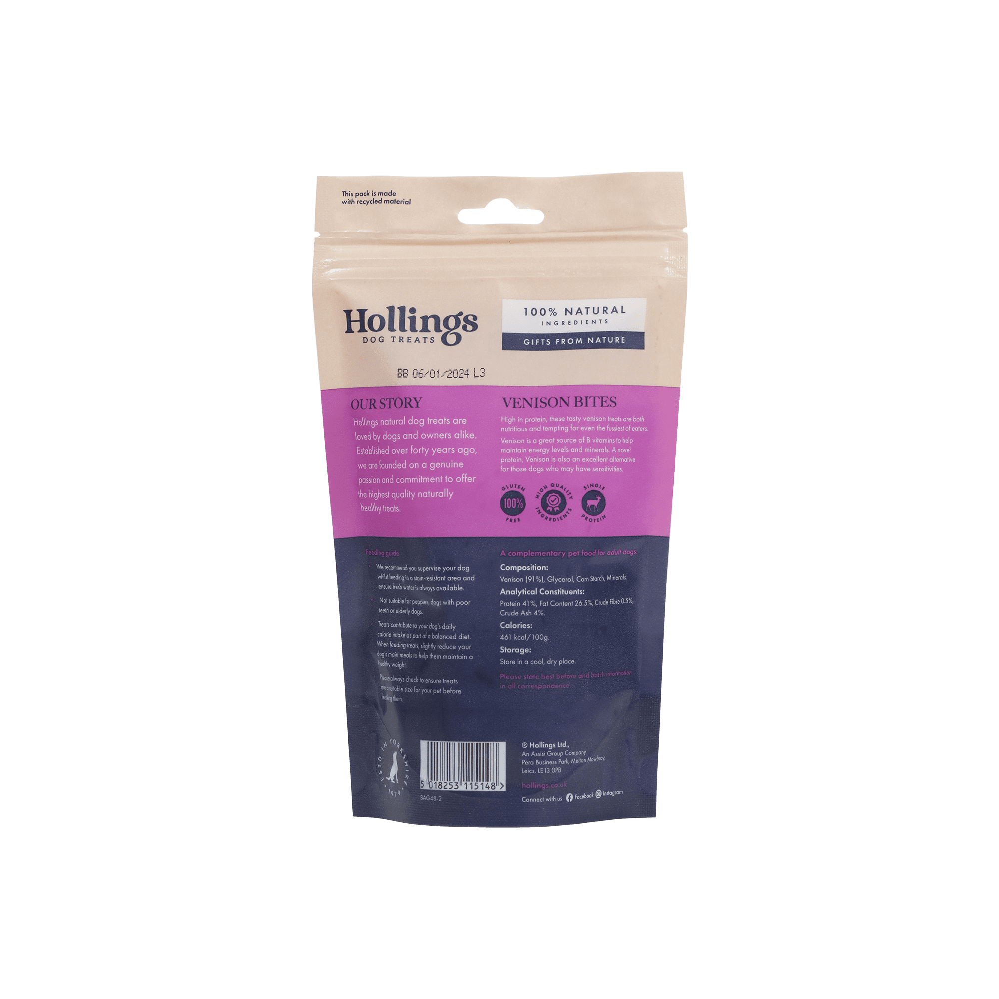 At Hollings, we believe dogs should be dogs—and that means feeding them the way nature intended. Our range is packed with premium proteins, gently air-dried to lock in natural goodness, with no artificial additives or fillers—just great tasting treats dogs love.