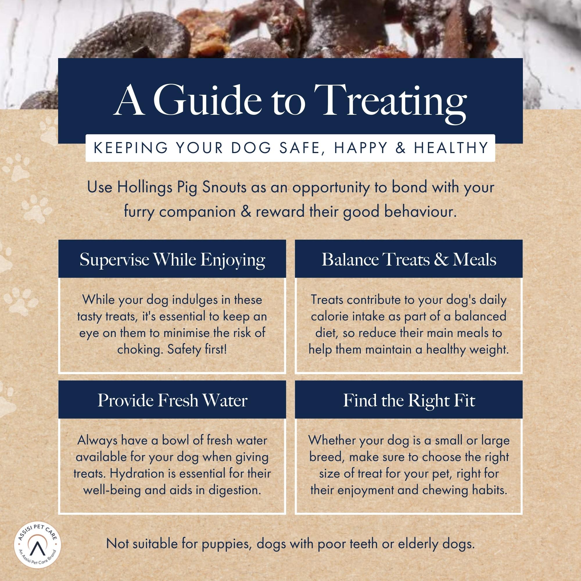 • A COMPLEMENTARY PET FOOD FOR ADULT DOGS OF ALL BREEDS - Treat your dog to something they will love to chew on - our Pig Snouts are great to use as a natural treat or reward. These treats are not suitable for puppies, dogs with poor teeth or elderly dogs.