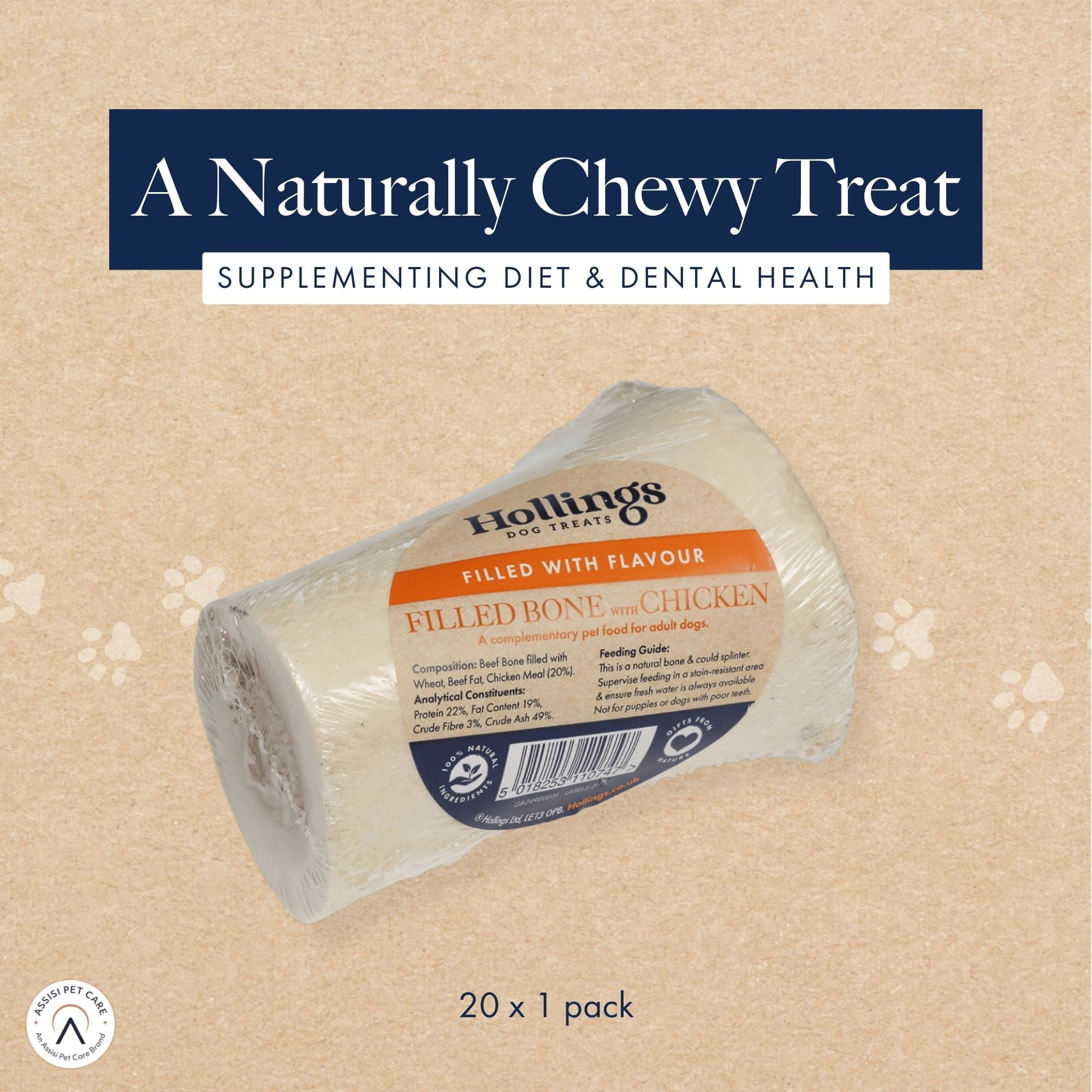 - A COMPLEMENTARY PET FOOD FOR ADULT DOGS OF ALL BREEDS - Treat your dog to something they will love to chew on - our Filled Bones are great to use as a natural treat or reward. These treats are not suitable for puppies, dogs with poor teeth or elderly dogs.