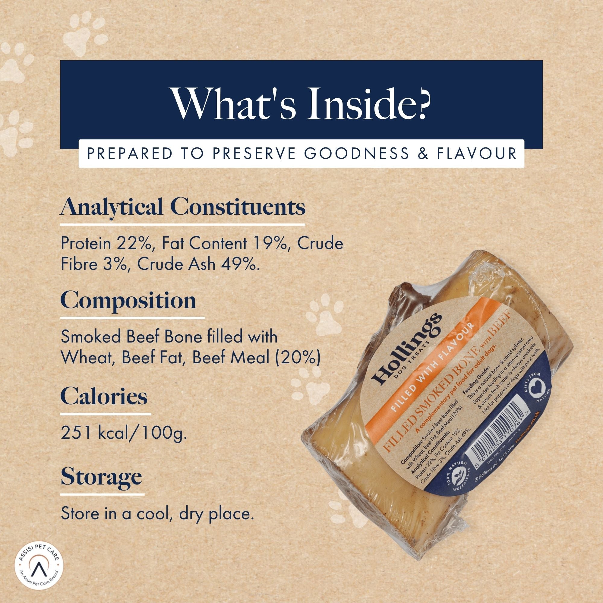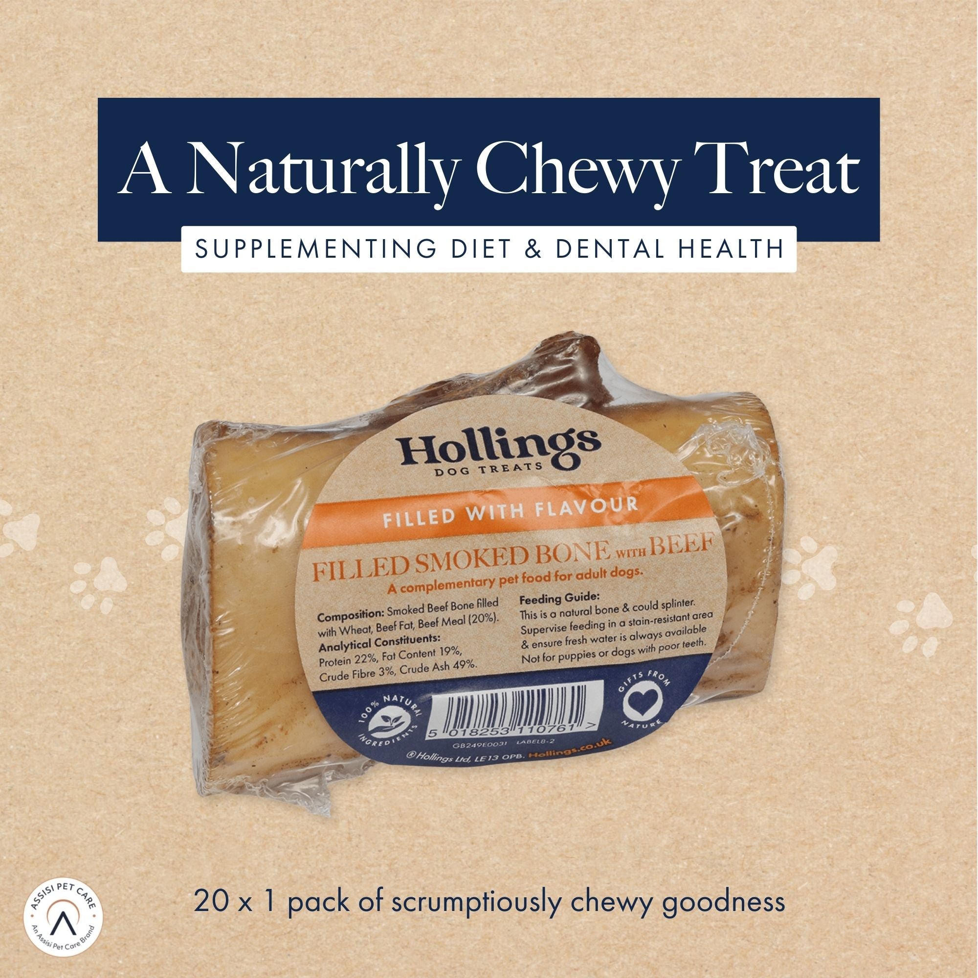 - MADE WITH HIGH QUALITY INGREDIENTS - A 100% natural bone, smoked & air dried to lock in the natural goodness, with a delicious beef filling that will satisfy even the fussiest of dogs. Our bones only contain the highest quality ingredients that your dog will love, with no artificial colours, flavours or preservatives.